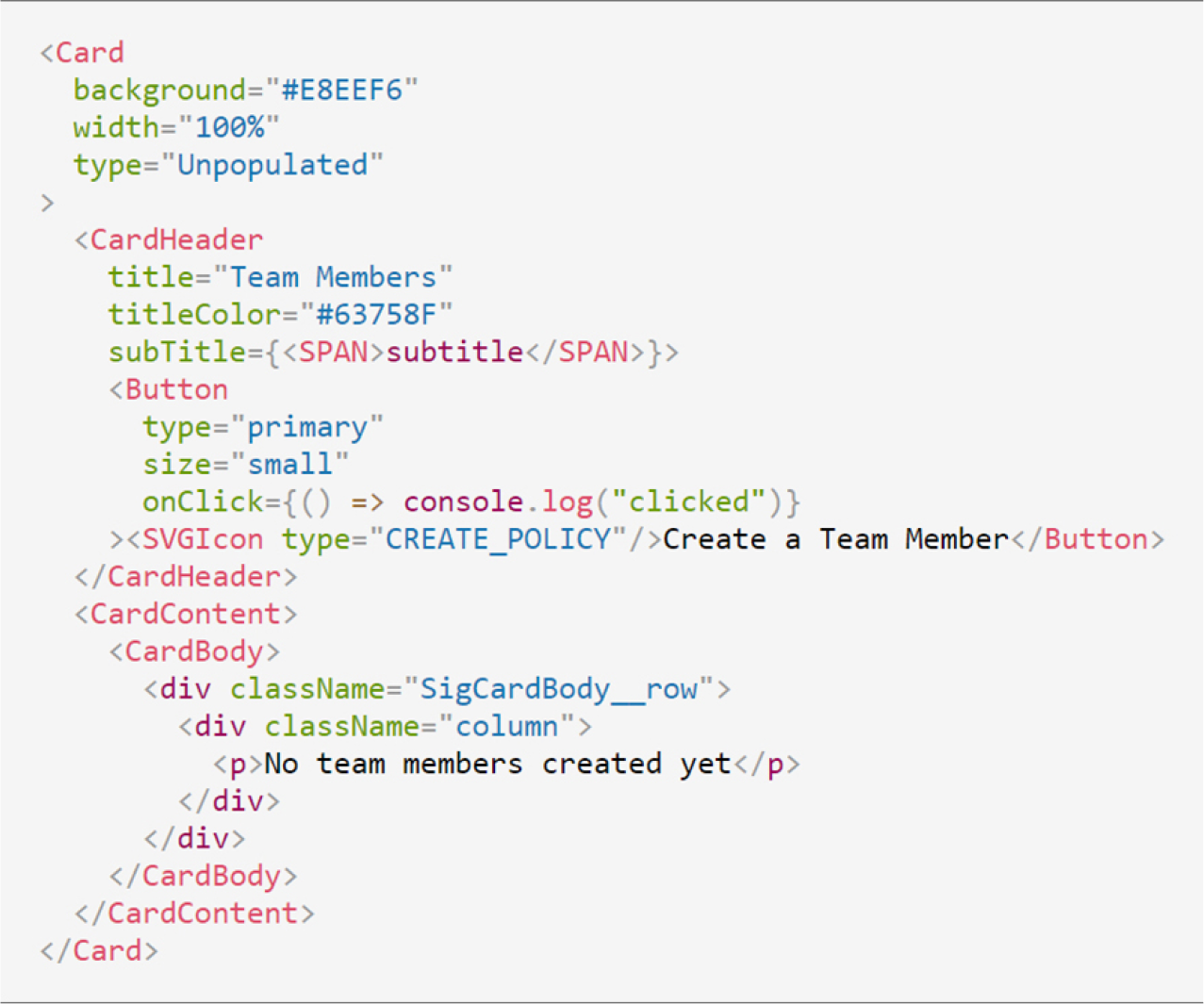 Example of typical code structure for design system components after this effort